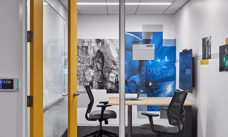 5. 安裝玻璃。用玻璃吸盤把厚玻璃吸緊抬起,將厚玻璃板先插入門框頂部的限位槽內(nèi),然后放在底托上,使厚玻璃板的邊部,正好封住側(cè)框柱的不銹鋼飾面對縫口。