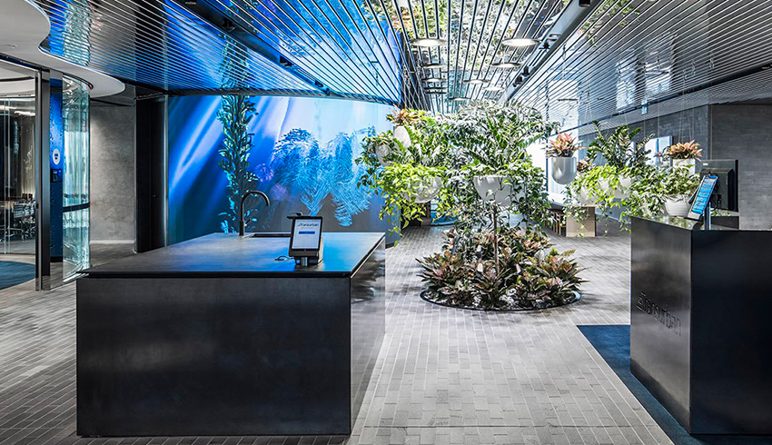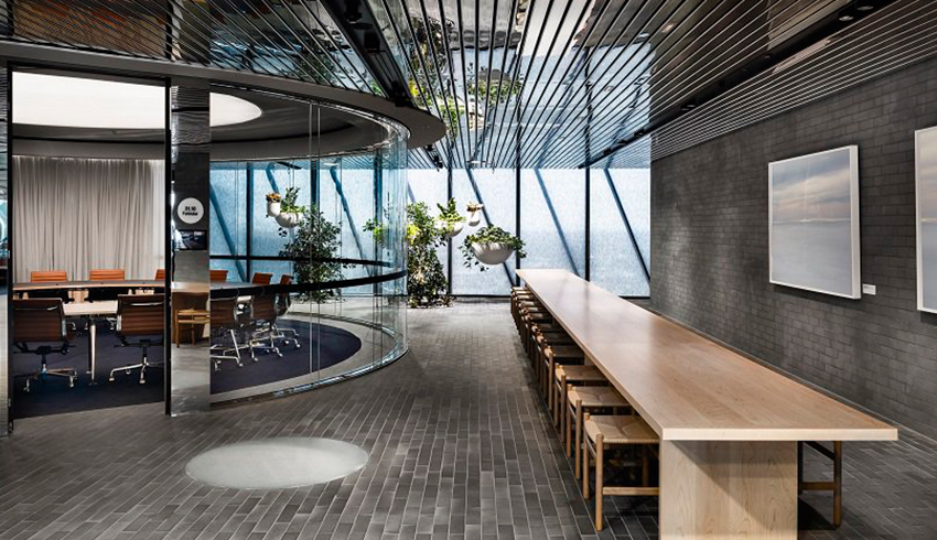 該項目占據(jù)了墨爾本柯林斯廣場(collins square)新建的第五塔樓的八層。一進門,從地面到天花板的電子屏幕都給人留下了深刻的印象。HASSELL的設(shè)計還包括插入地板的樹床,模仿城市人行道,穿過樓層的戲劇性圓形樓梯,以及在地板上打開舷窗以增加透明度。