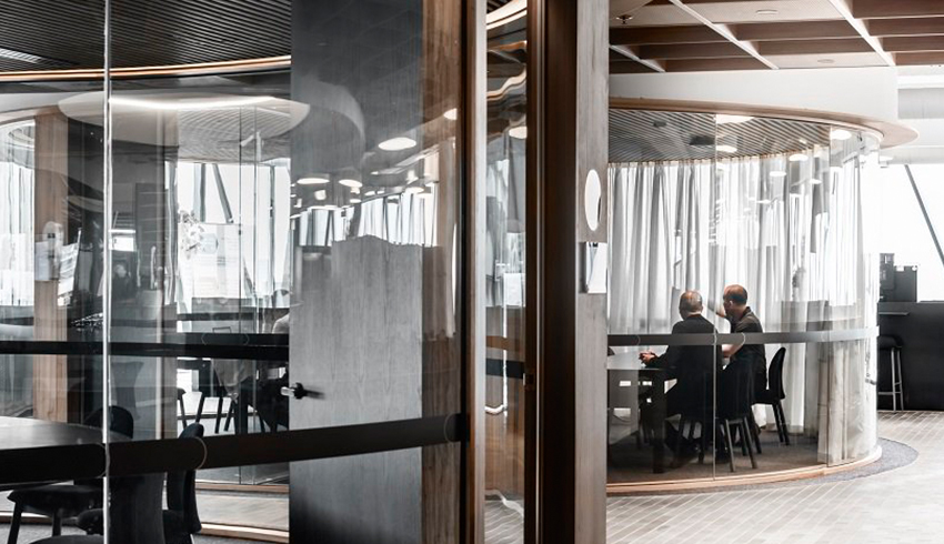 透明度在提升這個工作場所的社區(qū)意識方面也起著重要作用。對周圍人的感知能力建立了樓層之間的聯(lián)系。HASSELL在設(shè)計中引入了透明的舷窗,這些舷窗實際上是通向樓上或樓下樓層的窗戶。一些舷窗是完全開放的,而位于通道的其他舷窗則有磨砂玻璃蓋。