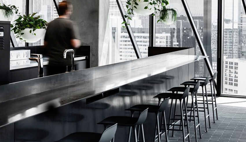 “在我們的城市里,自然在抵消混凝土叢林的嚴酷性方面發(fā)揮著重要作用——公園、街景、自然帶,所有這些都提供了喘息的機會,促進了人們的幸福感。”同樣的,對于transurban來說,綠化對于他們的新工作場所來說是必不可少的,從空間的任何角度都可以看到大量的花盆和懸掛的花盆,”walker繼續(xù)說道:“HASSELL與基地建筑緊密合作,通過將樹床植入地板,模仿城市步道,以適應(yīng)內(nèi)部街道景觀。綠色植物與木拱形天花板和黑色的鋼細木工相搭配,增強了空間的樸實自然。”